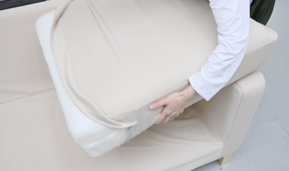 ※ファスナータイプは比較的ピッタリサイズのため、クッションをグッと押し込むような感じで取り付けます。
